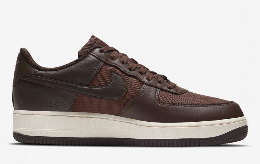 Nike will release a new colourway for the low Air Force 1 Gore-tex alongside the Gore-tex Boot. Everyone loves solid and rugged sneakers to rotate from time to time and this is one. This pair is seen to have a dark breadth of muddy earth tones. Its construction, which makes use of Sail midsoles and black treads as a starting point, quickly outfits atop with a panelling replete of two brown shades. There is lighter pigments line on the base in the mesh as well as the lace unit and lining while the overlays darken by a large margin in their leather polish. Branding, seen at both the tongue and lateral heel, then further nods to GORE-TEX as the namesake sprawls in a bolder, tan thread.