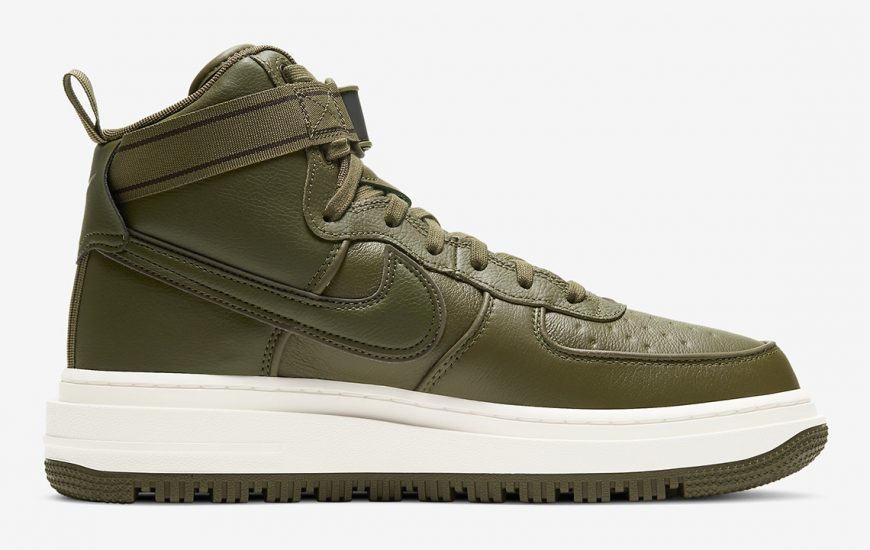 Nike has planned a return of the Air Force Gore-Tex series but this time in ever-resilient boot! This pair sports olive tones which are coated against a paneling of robust leathers, each structured identical to the original in most ways. The toe boxes, however, close up their usual perforations, leaving only subtle indents to remain relatively signature to the overarching blueprint. Also, the laces wrap along a tongue made of ballistic mesh, leading upwards to a strap whose aesthetic has been reworked to fit a more militaristic language. “GORE-TEX” stamps along the heel as an overt nod to the pair’s weather resistance, stamped in black atop an upgraded tooling tweaked for size and grip.