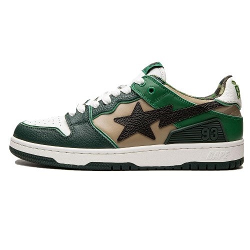 The holy grail A Bathing Ape SK8 STA M2 in Green is one shoe you don’t want your wardrobe to miss. The pair features a two-tone white and grey suede and leather upper while a contrasting black Star logo appears on the sides. Also seen is the camouflage insole.