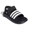 This Adidas Duramo Black/White SL sandal is designed for your active lifestyle. These Adidas sandals infuse a touch of heritage into any outfit with their distinctive 3-Stripes toe strap. You’ll find an adaptable ankle strap to secure your foot during your dynamic adventures, while a plush Lightmotion midsole ensures lasting comfort throughout the day.