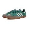This Adidas Samba OG in Collegiate Green and Gum Grey Toe boasts a lush forest green suede upper, accented by contrasting three stripes and an off-white suede heel. Gilded elements, such as the “Samba” lettering on the side panel, elevate the upper’s aesthetics. Completing the ensemble, a gum sole adds the final flourish to this pair.