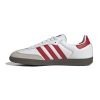 The Adidas Samba shoe was first made in 1949. After many years and OG releases, we have this dubbed white/better scarlet. This pair has the same leather uppers as the original. They still have the famous 3-Stripes branding and a heel that is a different colour.