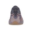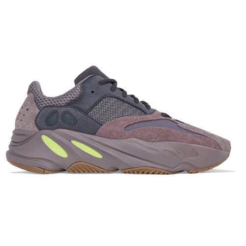 The Adidas Yeezy Boost 700 Mauve sneakers feature a full length drop in boost midsole and an upper made of suede and premium leather.  The shoe features mauve suede on the upper with green accents on the heel and a gum sole.  The ‘Adidas’ classic triple-stripe insignia is visible below mesh detailing.
