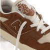 The collab Aimé Leon Dore x New Balance 550 pair in brown showcases perforated leather for its fabric uppers, maintaining the authenticity of the 34-year-old blueprint. Beneath, breathable textile reinforces the classic design. Both brand’s names are prominently featured on the tongue labels, sock liners, spine, and shoeboxes. The off-white finish on the sole units enhances the vintage charm of these New Balance shoes.