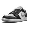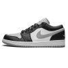 This Air Jordan 1 Low in Light Smoke Grey is amongst the expansive collections of Michael Jordan. This sneaker sports white on the mid-panel and light grey leather covers the perforated toe. Also, Contrasting black leather overlays dot the forefoot, eyelets, collar, and heel. Light Smoke Swooshes appear on either side as well as on the embroidered “Wings” logo on the heel. The tongue is finished in Light Smoke Grey nylon and features a Jumpman emblem and embroidered “23” on the lace loop.