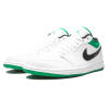 The Air Jordan 1 Low Lucky-Green is amongst the continuous redesign reiteration of the famous Michael Jordan Brand. The sneaker colourway Green/White was used to honour the Celtics, Chicago Bulls long rival. These sneakers feature a white tumbled leather forms the base of the shoe. A black tumbled leather Swoosh appears on both sides and a Lucky Green embroidered “Wings” logo on the heel. Additional green accents can be found on the leather panel on the collar and on the underside of the white nylon tongue. Jordan Brand adds a black Jumpman to the forward-facing side of the tongue.