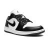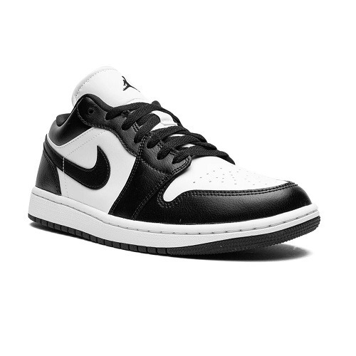 This Air Jordan 1 Low in White/Black/White is constructed in a full leather build with mesh tongues and lining. It features a White base with Black overlays, Swooshes, and rubber outsole. Also, black Jumpman tongue logos with White Wings, insole branding and midsole completes the design.