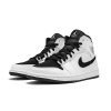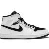 This pair of Air Jordan 1 Mid Alternate Think 16 derived its name from the metallic silver “ Think 16 ” colorway made for NBA star Kawhi Leonard. This shiny pair sports less metallic silver however, opting for a larger dose of solid white leather and black synthetic nubuck across the upper. Also, silver is found on the eyestay panel around the ankle, and on the classic “wings” logo.