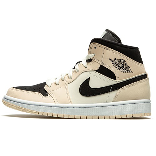 This Air Jordan 1 Mid Barely Orange sports a leather base and features an off-white quarter panel and some black elements such as the toebox, Swoosh, heel and tongue. Also, the rest of the vamp is sublimated by off-white inserts on the quarter panels, very pale orange and white laces. Finally, a two-tone sole and the usual branding, here presented in black.