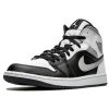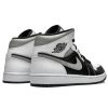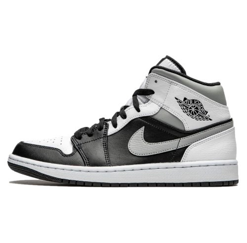 The Air Jordan 1 Mid OG White Shadow is another colourway from the original Michael Jordan’s first signature shoe. A ‘white shadow’ can be seen on the upper with white leather on the perforated toe, upper eyelets, collar overlay and heel. Also, a variety of smooth black leather is located on the forefoot overlay and mid-panel. Light Smoke Grey Swoosh branding appears on the sides and a black leather “Wings” logo resides on the collar. A white Jumpman emblem can be found on the black nylon tongue tag stitched onto the white nylon tongue.