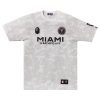The BAPE x Inter Miami CF Camo White Tee is a unique collaboration piece that merges the iconic camo design of BAPE with the vibrant spirit of Inter Miami CF. Crafted from premium materials, this limited edition tee features the distinctive Ape Head logo alongside the Inter Miami CF emblem, creating a bold statement for any streetwear enthusiast or soccer fan. Perfect for showcasing your style and team pride, this camo tee is a must-have addition to your wardrobe.