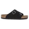 This Birkenstock Zürich suede sandal in black blends the support of a closed shoe with the airy feel of a sandal, appealing to both men and women alike. While it features closed sides, the design is open at the toes and heel to allow ample ventilation for the feet. Its natural look is achieved through the use of particularly soft suede for the upper, which fits the foot snugly like a second skin.