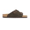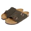 This Birkenstock Zürich suede sandal in mocha blends the support of a closed shoe with the airy feel of a sandal, appealing to both men and women alike. While it features closed sides, the design is open at the toes and heel to allow ample ventilation for the feet. Its natural look is achieved using particularly soft suede for the upper, which fits the foot snugly like a second skin.
