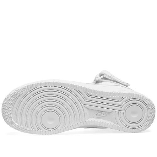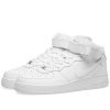This classic Nike Air Force 1 Mid in white has continued to make statements year in and out. Fitted with signature deubré and detailed at the sidewalls with a large Swoosh, this mid-top pair is cut from crisp white leather. To finish, the sneakerhead staple comes complete with the comfy Air-equipped sole.