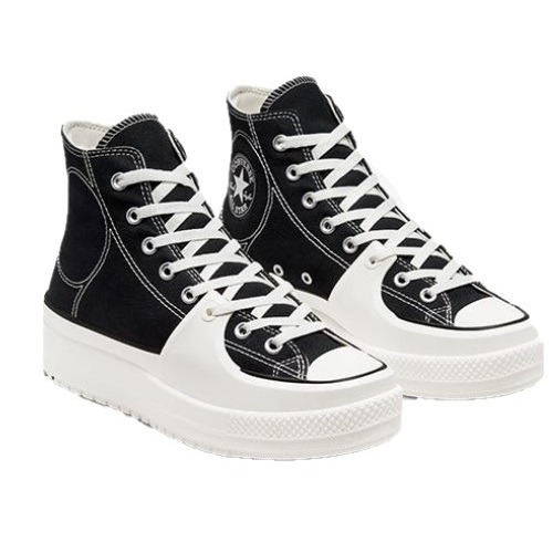 The Converse All-Star Construct stitch in black is a new styling on the classic pair we all know and love. This pair features the usual diamond outsole pattern overlaying with a herringbone texture for better grip. Also, deco stitching gives a luxe look. It is rounded out with OrthoLite cushioning to provide you with all-day comfort.