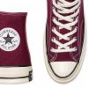 The Converse Chuck 70 Burgundy High Top is built from the original 1970s design. It is crafted from premium materials and features extraordinary attention to detail. It also has more cushioning, a more rigid canvas, and the same versatility. Also, it comes with an added extra cushy insole for arch support and stability and wing tongue stitching on 12oz canvas for durability. No reason not to wear them all day, every day.