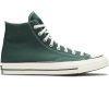 The Converse Chuck 70 Pine Green High Top is built from the original 1970s design. It is made with premium materials and extraordinary attention to detail. It also has more cushioning, a more rigid canvas, and the same versatility. With the added extra cushy insole for arch support and stability and wing tongue stitching on 12oz canvas for durability, no reason not to wear them all day, every day.