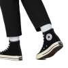 The Converse Chuck 70 Black High Top is built from the original 1970s design. It is made with premium materials and extraordinary attention to detail. It also has more cushioning, a more rigid canvas, and the same versatility. With the added extra cushy insole for arch support and stability and wing tongue stitching on 12oz canvas for durability, there is no reason not to wear them all day, every day.