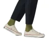 The Converse Chuck 70 Parchment Low is built from the original 1970s design. It is crafted from premium materials and features extraordinary attention to detail. It also has more cushioning, a more rigid canvas, same versatility. With the added extra cushy insole for arch support and stability and wing tongue stitching on 12oz canvas for durability, no reason not to wear them all day, every day.