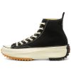 The Converse x JW Anderson Run Star Hike shoe features platformed sawtooth soles. The high-top trailblazer continues to make waves in the fashion industry, pairing all-black canvas with bright red star branding across the heel.