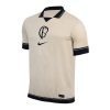 The Corinthians FC Fourth Jersey for the 2023/2024 design pays tribute to the club’s first uniform and the Campo do Lenheiro – Corinthians’ first football field. The beige shirt features dust details representing the hardworking fans, with the Corinthians Paulista shield and Nike logo included in the centre. The inscription “É o equipe do povo” (It’s the people’s team) emphasises the club’s working-class identity.