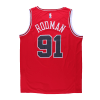 This Nike Dennis Rodman Chicago Bulls Jersey #91 features Chicago Bulls graphics and classic trims. It is also made with the Dri-FIT technology for added comfort.