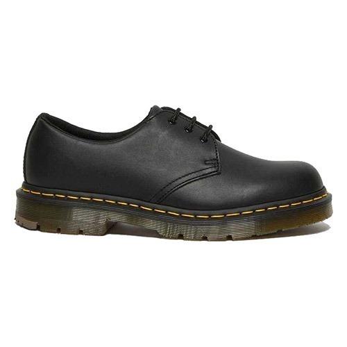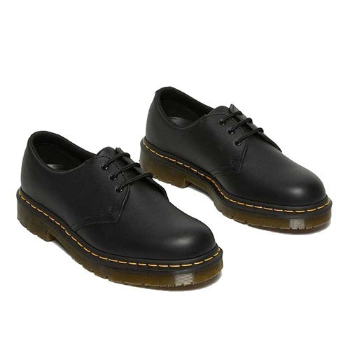 The all-time classic Dr Martens 1461 Black Leather Oxford Shoe is being crafted with the exact same technique used in crafting the 1461s in 1961. The shoe features an upper made from thick Quilon leather is secured to Dr Martens’ signature air-cushioned sole with the brand’s unmistakable yellow stitching. Dr Martens Made in England Vintage 1461 Oxford features the shoe’s original 3-eye silhouette and grooved sides.