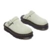 Built on a hybrid air-cushioned sole that combines featherweight EVA with durable PVC, these mules deliver unparalleled comfort and longevity. The Goodyear-welted construction, reinforced with Dr. Martens’ signature yellow welt stitching, not only enhances durability but also adds a distinctive touch of brand heritage. The platform sole, measuring approximately 1 inch with a heel height of 1.25 inches, offers subtle elevation without compromising stability. Whether paired with jeans, skirts, or dresses, the Dr. Martens Zebzag Suede Slingback Platform Sage Green Mules are a versatile addition to any wardrobe, embodying the perfect fusion of classic craftsmanship and contemporary design.