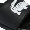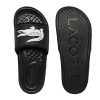 Leisure time is feet-satisfying in this Lacoste Croco Dualiste slide in black/white. This slide sandal features a dual-density outsole built from a soft footbed to ensure the ultimate underfoot comfort. Also, the moulded strap is layered in foam, the lining is made with soft mesh and the design is finished via the iconic crocodile.