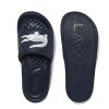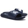 Leisure time is feet-satisfying in this Lacoste Croco Dualiste slide in navy blue. This slide sandal features a dual-density outsole built from a soft footbed to ensure the ultimate underfoot comfort. Also, the moulded strap is layered in foam, the lining is made with soft mesh and the design is finished via the iconic crocodile.