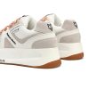 This trending Naked Wolfe Slide White Sneakers has skateboard wear potential. The pair features leather, suede and mesh upper featuring barbed wire tape, and moulded 3D rubber side panel moulds. Also, a 3D bubble “Wolfe Head” Plaque on the heel also has two pairs of extra thick ’90s-inspired custom-designed shoe laces.