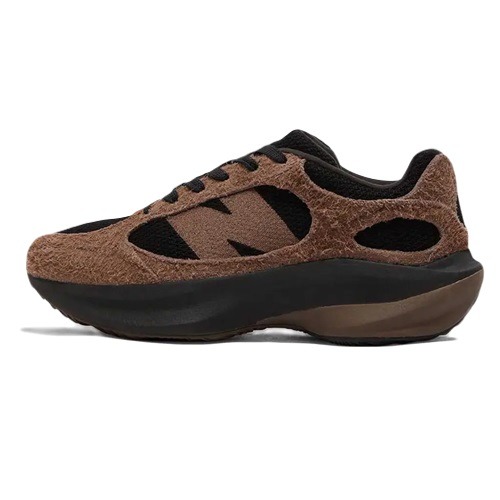 Here is the New Balance WRPD Runner low-top sneakers in a sophisticated dark mushroom hue complemented by driftwood and black accents. These sneakers showcase an innovative design, boasting sculpted contours throughout the full-length FuelCell midsole. The distinctive details include an intricately embroidered ‘N’ logo, a medial stability post for enhanced support, and a captivating wavy tread pattern on the outsole.