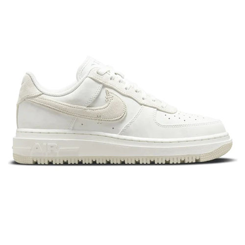The Luxe Nike Air Force 1 Low Summit White features lug-soled tooling that’s unique. Its tread seems specifically geared for the icy floors, remoulded to better adhere to slippery, unsafe conditions. Also, tanned, contrast stitching can be seen and ostensibly nods to the good year welted, while the rest of the upper opts for simplicity with either a white tumbled leather.