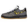 This style of the Nike Air Force 1 Low Remix Pack is covert with prints designs. This pair sports a black washed denim base all over the upper with a black and yellow camouflage print placed on the side panel Swooshes. Also, Pops of red are then seen on the mini Swoosh by the toe, the Nike tag on the Swoosh, and the Nike branding on the tongue and heel. Furthermore, black leather on the eyestay and heel tab, a plaid inner liner, white tongue and laces, a black midsole, and a gum rubber outsole.