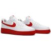 The Nike Air Force 1 Low ‘White Red Sole’ makes use of nontraditional colour-blocking to emphasize the sneaker’s tooling. The white leather upper, accented with pops of University Red on the Swoosh, heel tab and woven tongue tag, rides on a foam midsole dipped in the same crimson hue. The rubber pivot-point outsole maintains the monochromatic finish, while embossed ‘Air’ branding stands out in contrast to white lettering.