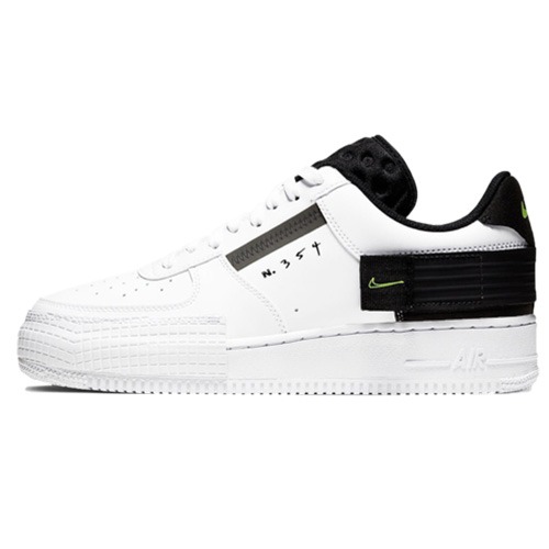 This Nike Air force 1 Type in White features White and Black across the upper while Volt accents give it some pop. Constructed with transparent materials to showcase the closure system along with an adjustable strap for a custom fit. Other highlights includes ’N.354’ branding, visible stitching and White on the midsole and rubber outsole to complete the look.