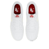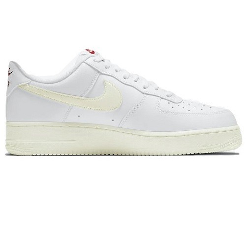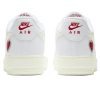 This Valentine’s day inspired Nike Air Force 1 sports an almost all-white upper which is interrupted by a small heart on the lateral heel. The red branding can be seen on the tongue tag and heel cap too. The Swoosh and midsole are a subtly contrasting sail colourway, which is different enough from the white leather upper to be noticeable, but not too much as to dominate.