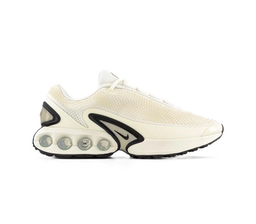 The Nike Air Max DN Trainers in Sail, Black, Coconut Milk, and Beach Team Gold combine style and performance seamlessly. Featuring a breathable, multi-layered mesh upper for all-day comfort, these trainers are designed with a dual-chamber Nike Air unit in the heel, delivering responsive cushioning and a springy feel with every step. Accentuated with bold black details and a textured TPU midfoot clip, they offer both durability and modern aesthetics. The rubber outsole ensures reliable traction and is perfect for casual wear or light activity.