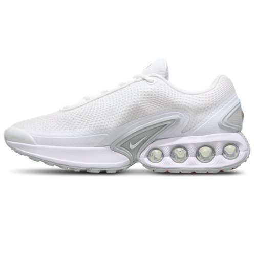 The Nike Air Max DN Triple White combines modern innovation with minimalist style. Designed with a sleek, all-white colourway, it features Nike’s Dynamic Air unit system, which provides adaptive cushioning through dual-pressure tubes. This advanced design ensures a smooth, responsive feel with every step, perfect for long hours on your feet. The breathable mesh upper and lightweight materials offer enhanced comfort, while the durable rubber outsole provides reliable traction.