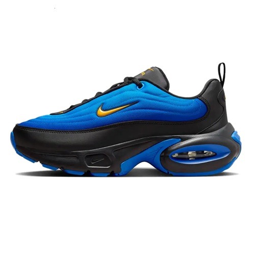 The Nike Air Max Portal in Racer Blue is a bold fusion of style and performance. Featuring a sleek black base with vibrant Racer Blue accents, this sneaker creates a striking contrast perfect for dynamic streetwear looks. Its design is elevated by University Gold details on the Swoosh, tongue, and heel, adding a touch of elegance. The upper combines breathable mesh with durable leather overlays, ensuring comfort and support. The signature Air Max unit in the heel delivers exceptional cushioning for all-day wear, while the durable rubber outsole ensures superior traction. This modern yet versatile Nike Air Max Portal shoe in Racer Blue is ideal for both casual and active lifestyles.