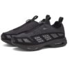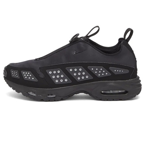 The Nike Air Max SNDR Black & Metallic Silver is a sleek update on the iconic Air Max Sunder, originally launched in 1999. This 25th-anniversary edition blends nostalgic design elements with modern innovations. Its standout features include a zippered shroud that ensures a secure fit while showcasing reflective accents for a bold visual contrast. Beneath the shroud, the subtle detail of “6453” pays homage to Nike’s brand identity, corresponding to “N-I-K-E” on a keypad.