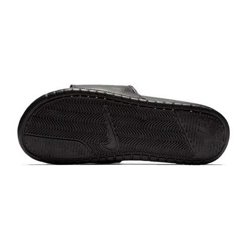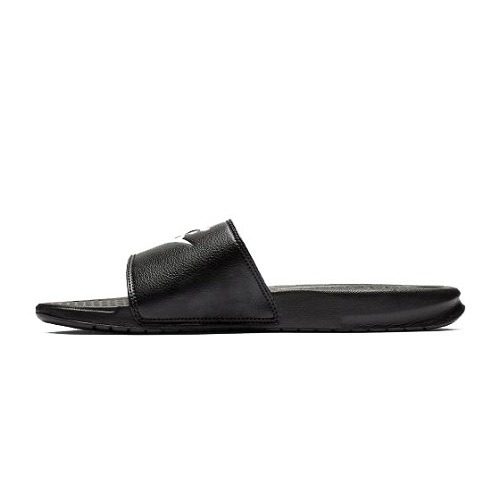 The Nike Benassi JDI Black/White Slides feature a lined upper with a bold logo for plush comfort and an athletic look. A foam midsole and outsole provide lightweight impact protection.