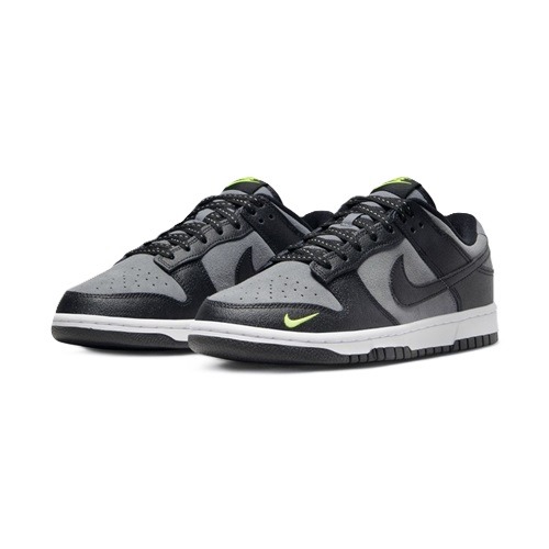 Many options to choose from when it comes to the Nike dunk low and this right here comes in Black/Grey/Volt. This 80’s 80-style iteration seamlessly blends sleek black and grey tones with vibrant volt accents, offering a bold look. This pair is crafted with premium materials for durability and a cushioned sole for all-day comfort, these sneakers provide both style and support.