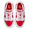 The Nike Dunk Low University Red features the Be True to Your School-style colourway. This pair features a leather upper and also a university red finish on its underlays, overlaid by white leather throughout. Also, perforations on the toe box are included for breathability, while underfoot, a two-tone rubber cupsole includes a concentric university red rubber outsole for traction.