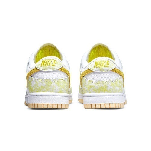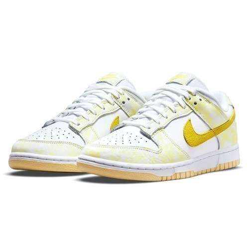 Here is another design from the Nike Dunk collection dubbed Yellow Strike. The designs and colour variants keep pouring in and you just have to find one that resonates with you. This pair features a white leather upper with an acid wash-like finish on the overlays and tongue label. Yellow suede Swooshes, branded tongues and heels, insoles and pastel rubber outsole atop a white midsole to complete the design.