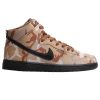 This Nike SB Dunk High Pro sneaker is draped in Desert camo. Canvas material is spotted at the upper which combines brown, tan, and eggshell tones for a badlands-esque take on the recognizable stylings. Also, brown laces tie the look together both literally and figuratively, while a Zoom Air bag embedded in the insole ensures all-day comfort.
