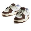The Puma 180 Sneaker in Sand/Brown was inspired by the 90’s skate design. The pair features a Sand and Brown colourway on a smooth textile and leather in the upper. Also, a lace fastening to lock you in, with a padded collar for added support and a mesh lining for a snug fit. Underfoot, they sit on a chunky IMEVA and rubber midsole for a cushioned step, with a grippy outsole for total traction. They are signed off with the signature Formstrip and PUMA branding throughout.