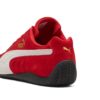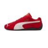 The PUMA Speedcat OG Sneakers in Red/White blend motorsport heritage with contemporary street style. Originally designed as fireproof footwear for Formula 1® drivers, this iconic silhouette has evolved over 25 years to become a fashion staple. Crafted with a premium leather upper and a distinctive suede PUMA Formstrip, these sneakers offer both luxury and durability. Inspired by racing tyre tread, the low-profile rubber outsole ensures exceptional grip and flexibility, while the rounded driver’s heel enhances comfort during daily wear. Embroidered with the PUMA Cat logo on the toe, the Speedcat OG stands out with its sleek lines and bold colourway, making it a versatile choice for both men and women who appreciate a fusion of retro charm and modern functionality.