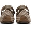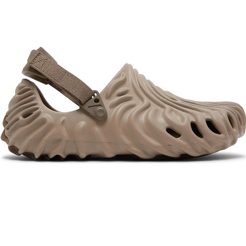 The Salehe Bembury x Crocs Pollex Menemsha Clog is a dark taupe hue that floods the reconstructed foam build. Also, a series of concave ridges that recall Bembury’s signature fingerprint motif is highlighted. Ventilation ports are meant to align with high-heat areas of the foot for targeted ventilation. Dual Crocs and Salehe Bembury branding is embossed on the removable heel strap.
