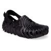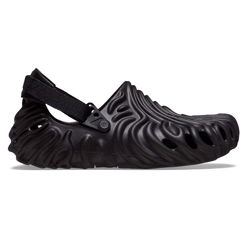 The Salehe Bembury x Crocs Pollex Sasquatch Clog features dark black; the attached strap follows suit, obscuring the various hardware and embossed Crocs branding. Also, there is an additional, white-coloured strap packaged alongside, allowing you to add a bit of contrast if you desire. The slip-on can be worn in two ways: with or with the strap, depending on your mood.